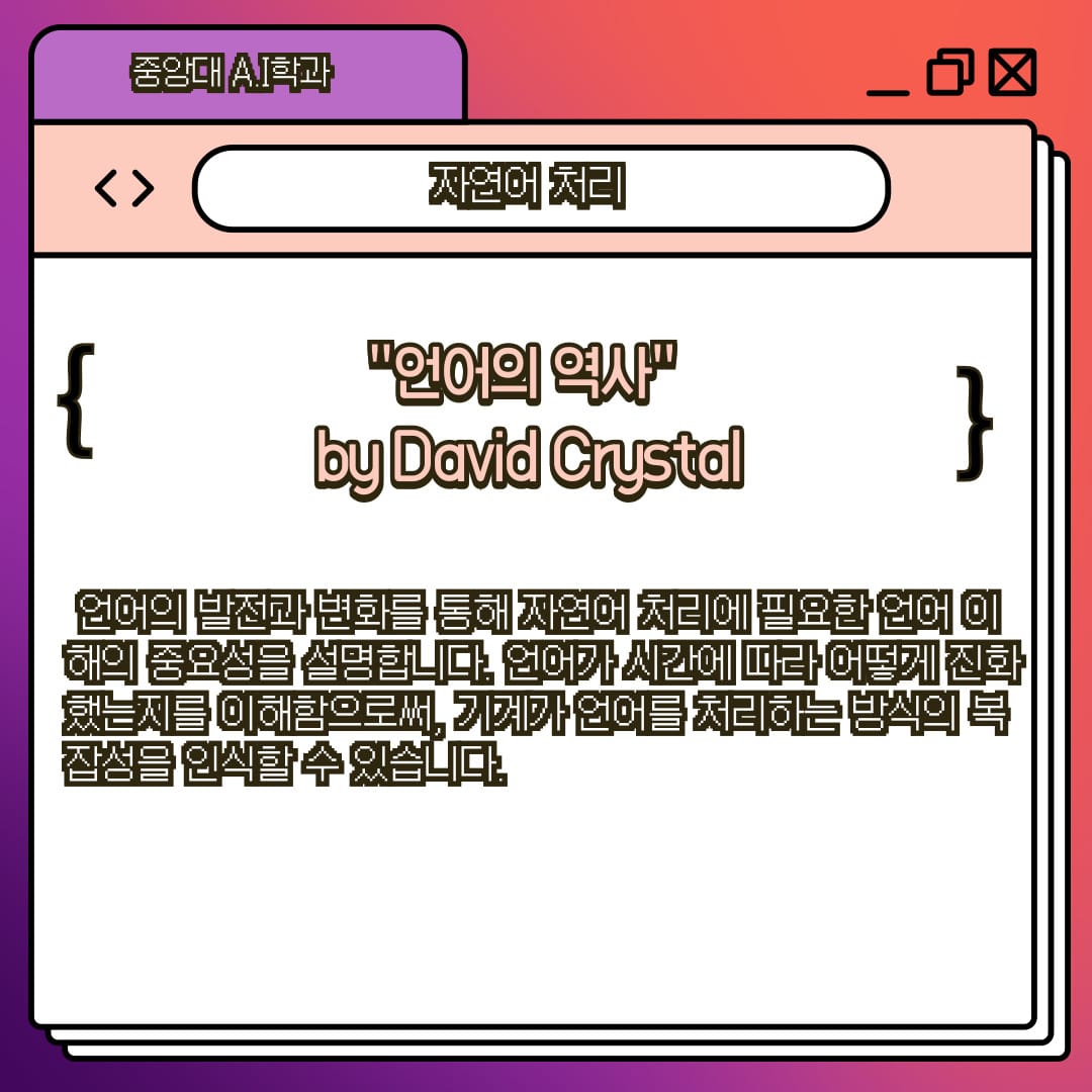 자연어 처리와 관련된 인문,사회,과학 영역 등의 다양한 영역의 책을 추천합니다. 이책들은 각각의 분야에서 어떻게 언어가 사용되고 연구되는지에 대한 통찰을 제공함으로써, 독자들이 융합형 독서의 중요성을 이해하고 자연어 처리 기술의 더 큰 그림을 볼 수 있게 할 것입니다.