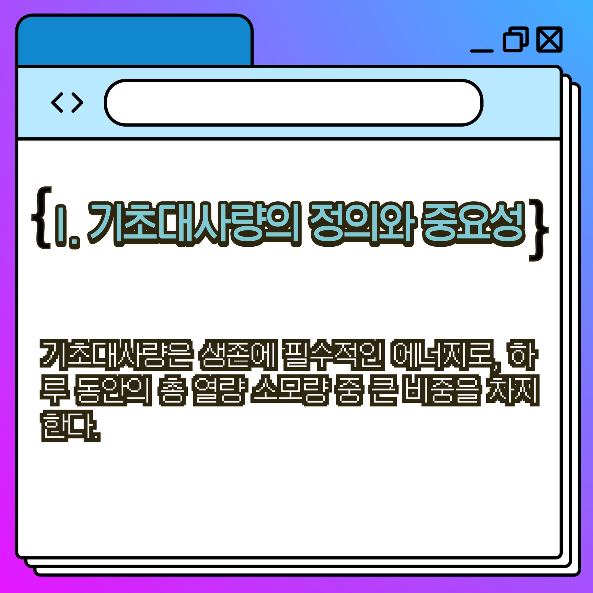 기초대사량은 생존에 필수적인 에너지로, 하루 동안의 총 열량 소모량 중 큰 비중을 차지한다.