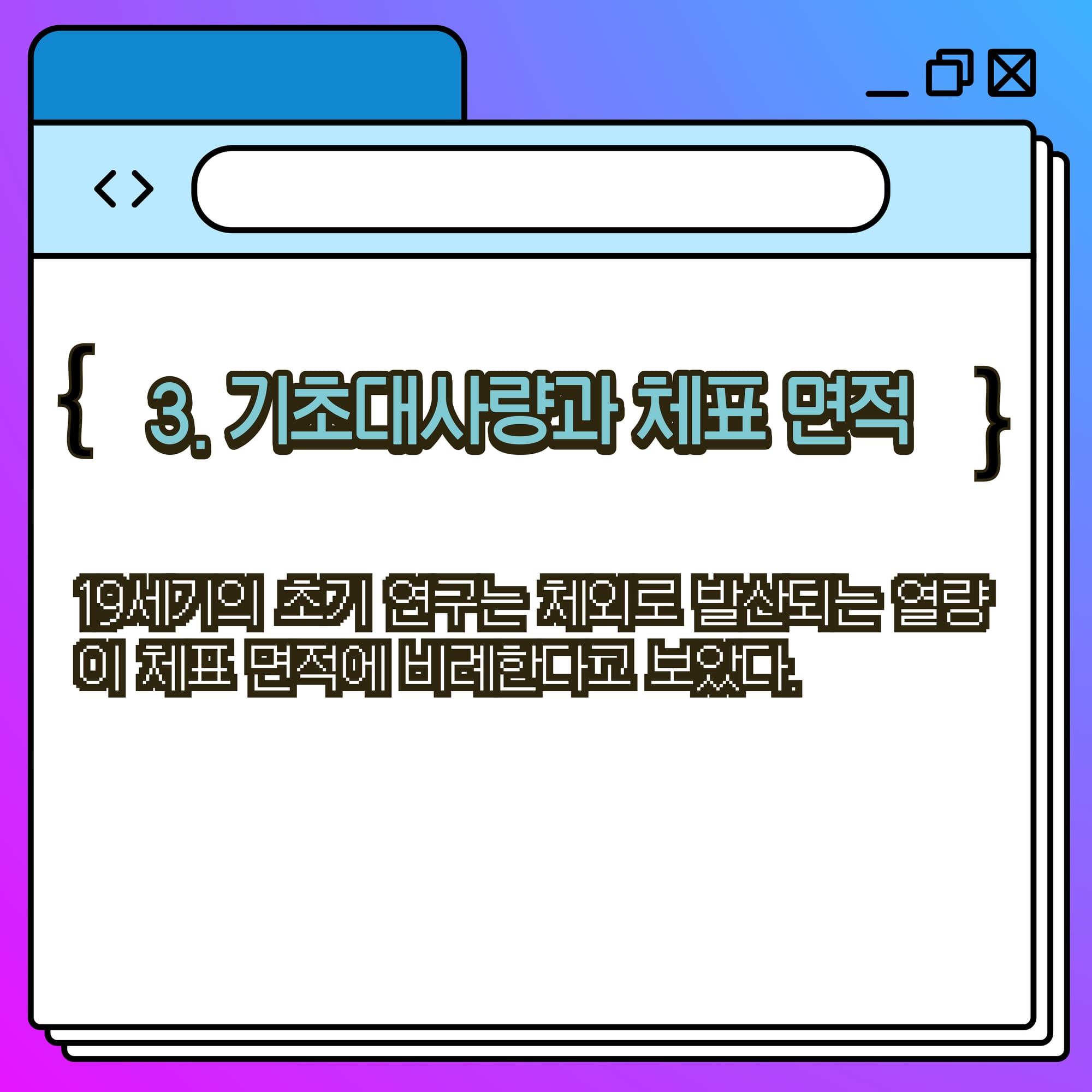19세기의 초기 연구는 체외로 발산되는 열량이 체표 면적에 비례한다고 보았다.