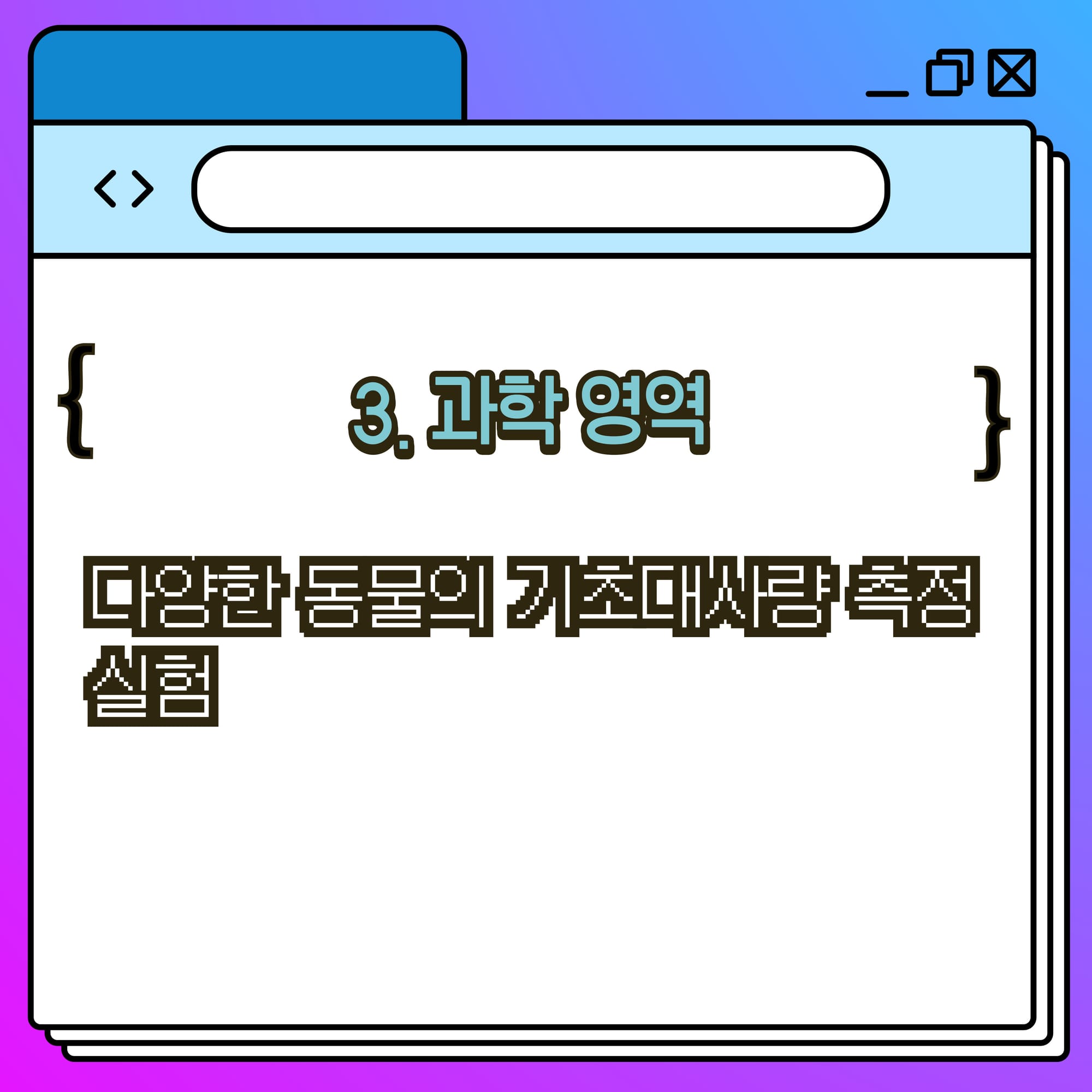 활동 내용: 간단한 실험을 통해 동물의 기초대사량을 측정하고, 체중과 기초대사량의 관계를 실험적으로 도출하는 활동.
